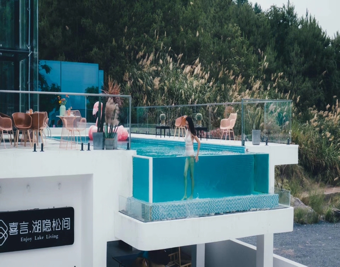 這里有無邊際泳池,實現(xiàn)水天一色的精致,更有網(wǎng)紅房皓月般通透的湖景和松林影印的綠意盎然。
