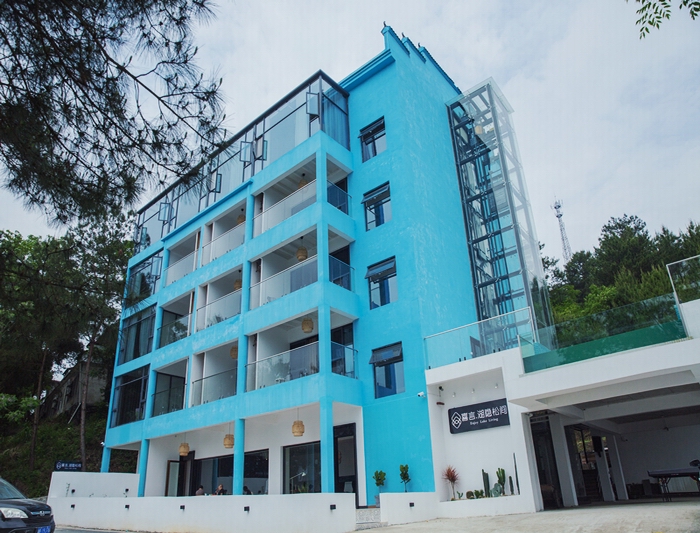 喜言.湖隱松間位于白廊碼頭左側(cè)的半山之上,向上有松林小徑愜意徜徉,向下100米是烤魚飄香、熱鬧市集的白廊游客碼頭,鬧中取靜,在煙火生息中獨享一份寧靜。