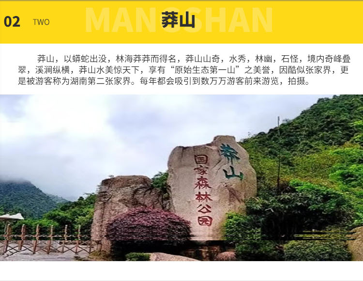 中國原始生態(tài)第一山,一山夸二省,被譽(yù)為第二西雙版納,第二張家界,莽山是國家森林公園、國家地質(zhì)公園、國家風(fēng)景名勝區(qū)、國家AAAA級(jí)景區(qū)。