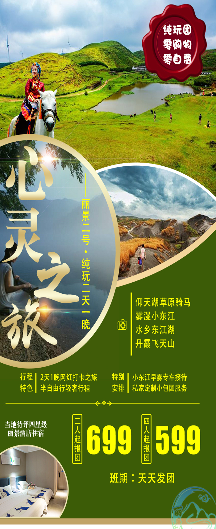 1.該團為小包團2人起發(fā)團,4人起包團立減100元每人