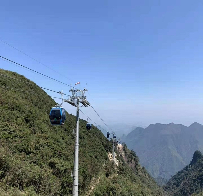 莽山五指峰索道,自奧地利多貝瑪亞公司引進,采用全國最先進自動化控制系統(tǒng),是目前全國最長的單線循環(huán)拖掛抱索道8人吊廂的索道,索道線路斜長3.7公里;上下站高差1000米,共有吊廂92個;鋼絲繩達58毫米。每小時單向運量達2000人。