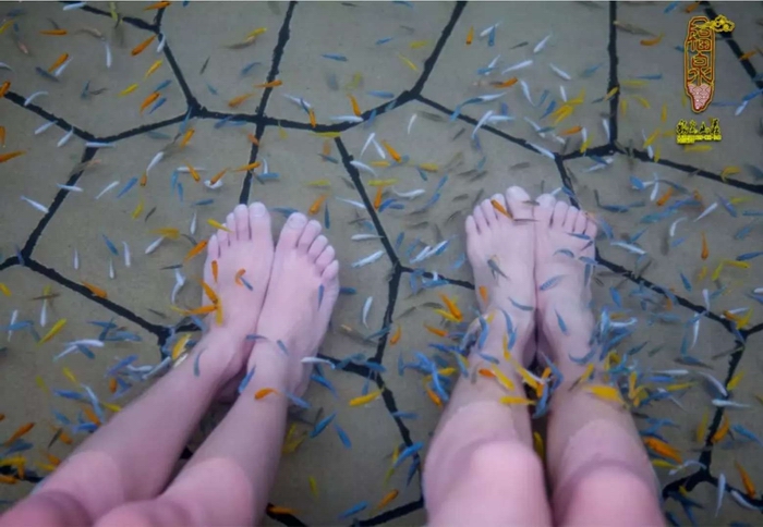 這種奇特的魚療對人體有極大的好處,可以吸食人體新陳代謝的死皮并能把殘留在人體表皮毛孔中的垃圾和細菌吸出。使人體變的通透,免受細菌、病毒在人體日積月累的沉積,同時使人體充分吸收溫泉中的礦物成份,達到祛病的目的。