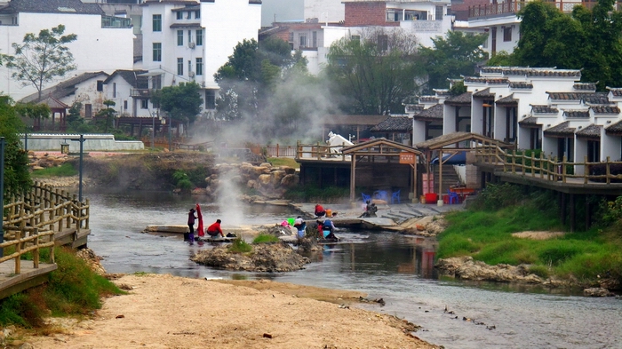 汝城熱水溫泉是純天然的地?zé)釡厝?,在景區(qū)周邊隨處可見溫泉泉眼,汝城熱水溫泉歷史悠久,熱水鎮(zhèn)的村民世代與熱水和共生共榮,為了紀念這一大自然神奇饋贈,當(dāng)?shù)厝嗣褡园l(fā)集資建造了中華溫泉博物館,并對游客實行售票開放,進入溫泉博物館的游客可以體驗露天溫泉煮雞蛋,煮玉米的樂趣。