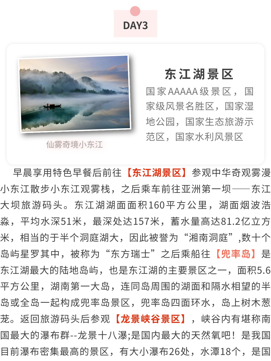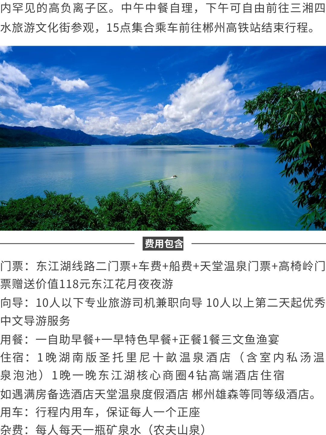 郴州旅游3天2晚飛天山+東江湖+白廊+仰
