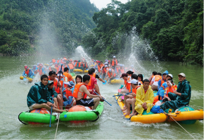 4. 漂流時,游客禁止游泳,漂流進入急灘時嚴禁打水戰(zhàn),未上漂流終點平臺禁止脫救生衣。如遇險灘、險情,游客必須聽從指揮、互相幫助,采取緊急搶救措施;
