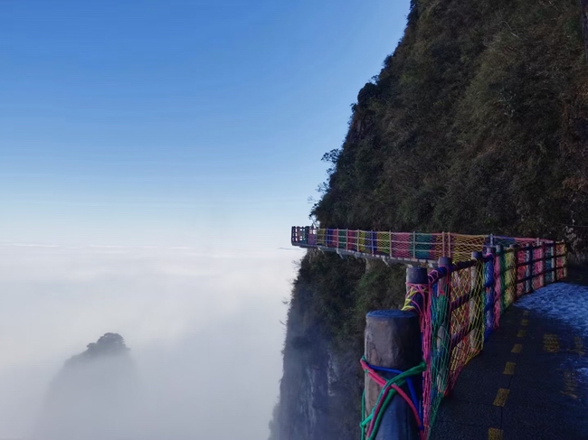 五指峰景區(qū)是由中景信集團(tuán)的歷數(shù)三年巨資投入、超前規(guī)劃、人性設(shè)計、精工建設(shè)及匠心打造,南中國最長懸空棧道:總長約8公里,海拔1400米1600米兩層棧道,全程無障礙觀光環(huán)線,登高山、臨絕壁如履平地。