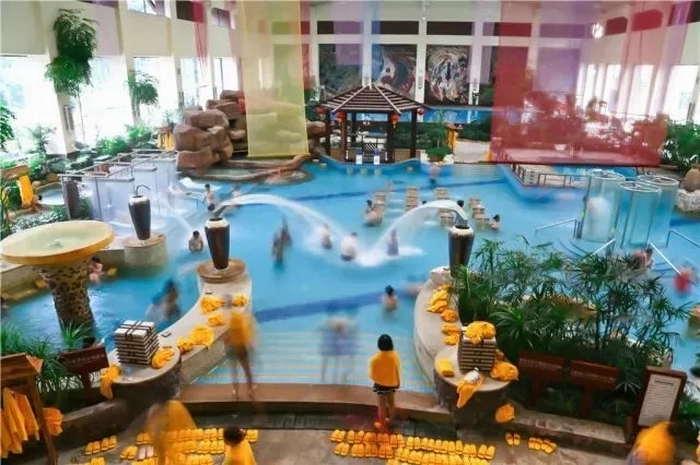 室內(nèi)溫泉館占地面積5165平方米,是我國(guó)少有的大型溫泉水療館,館內(nèi)設(shè)有室內(nèi)水療SPA館及大型室內(nèi)游泳池,結(jié)合了多種溫泉水療養(yǎng)生原理,如噴射水療、腰椎按摩水療、腳部水療、周身水療、穴位水療等功能。